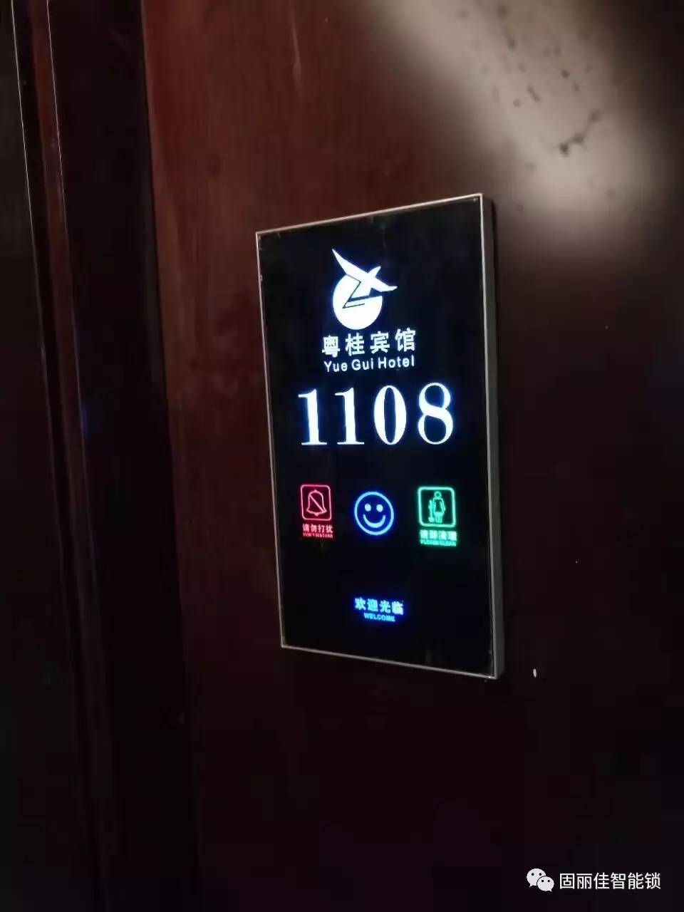 廣州粵桂賓館此次升級(jí)裝修與我們固麗科技合作安裝了固麗佳GLJ8928-FH的新穎高端款酒店電子門鎖與配套的定制電子門顯,此款酒店鎖是可以根據(jù)酒店要求定制LOGO,起到更好的展示作用;同時(shí)背面的面板設(shè)計(jì)也更加利于以后更換電池,加上精美的定制電子門顯使得酒店顯得更加的高端智能化。