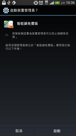 市面上有不少可以鎖住或隱藏重要資料與照片的APP軟件,這些軟件不但好用,而且功能也非常強大大。不過常使用的人一定知知道這些軟件的致命缺點,就是只要軟件一移除,就什么防護效果都沒了。所以今天小弟要推擠=一款可以將隱私軟件設為管理者權限,避免因移除了失去防護功能的免費APP軟件-「智能鎖」。強化了管理者權限的隱私鎖,相信一定更能讓你用的安心喔。